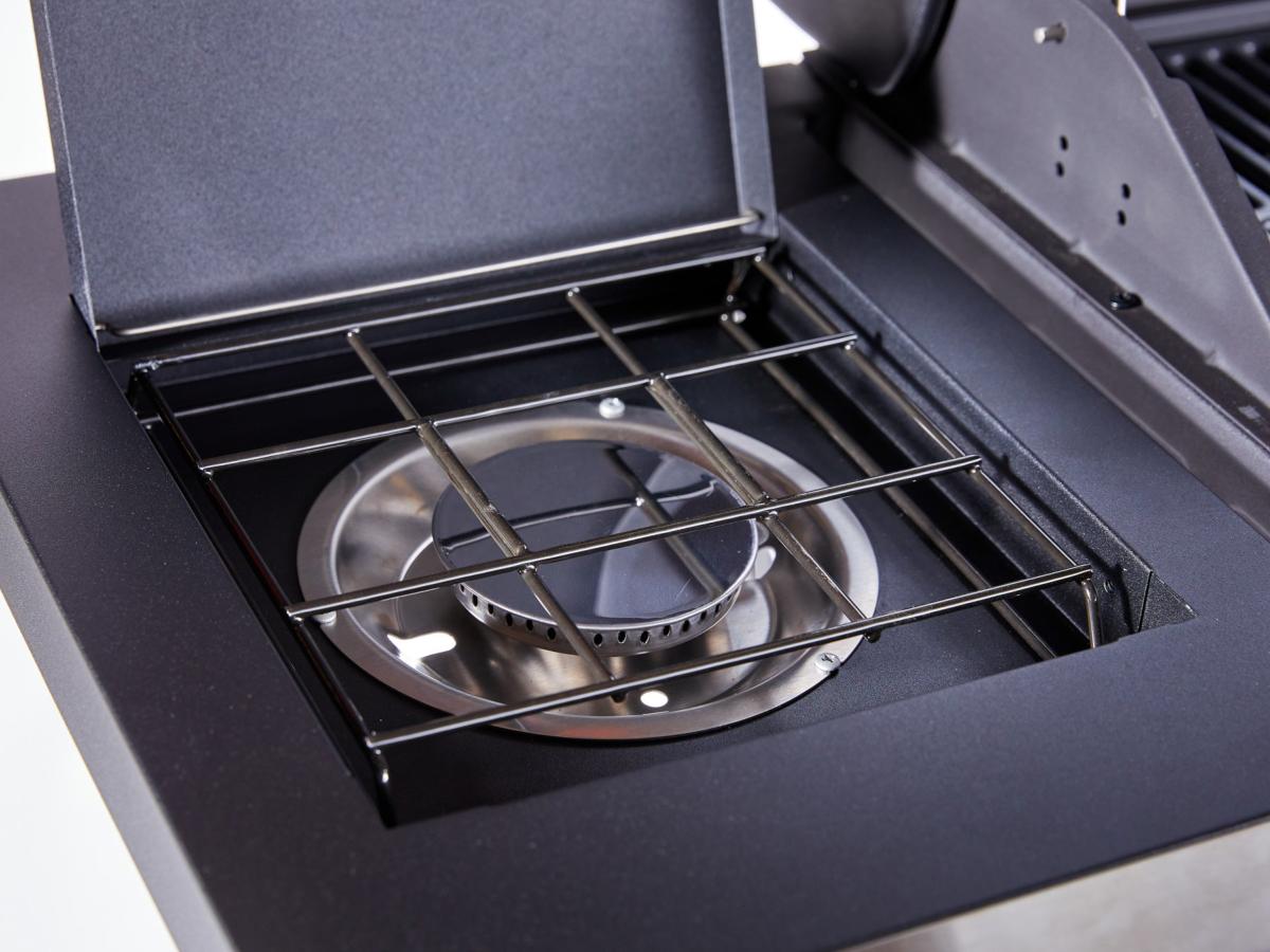 Il dispose de 4 bruleurs inox principaux et d' un brûleur latéral, 2 grilles en fonte émaillées pour une cuisson idéale,surface 640x420, un bac a graisse et un coffre de rangement intégré. Le brûleur latéral du Meteor 4 vous permet de reserver des sauces ou completer votre cuisson.