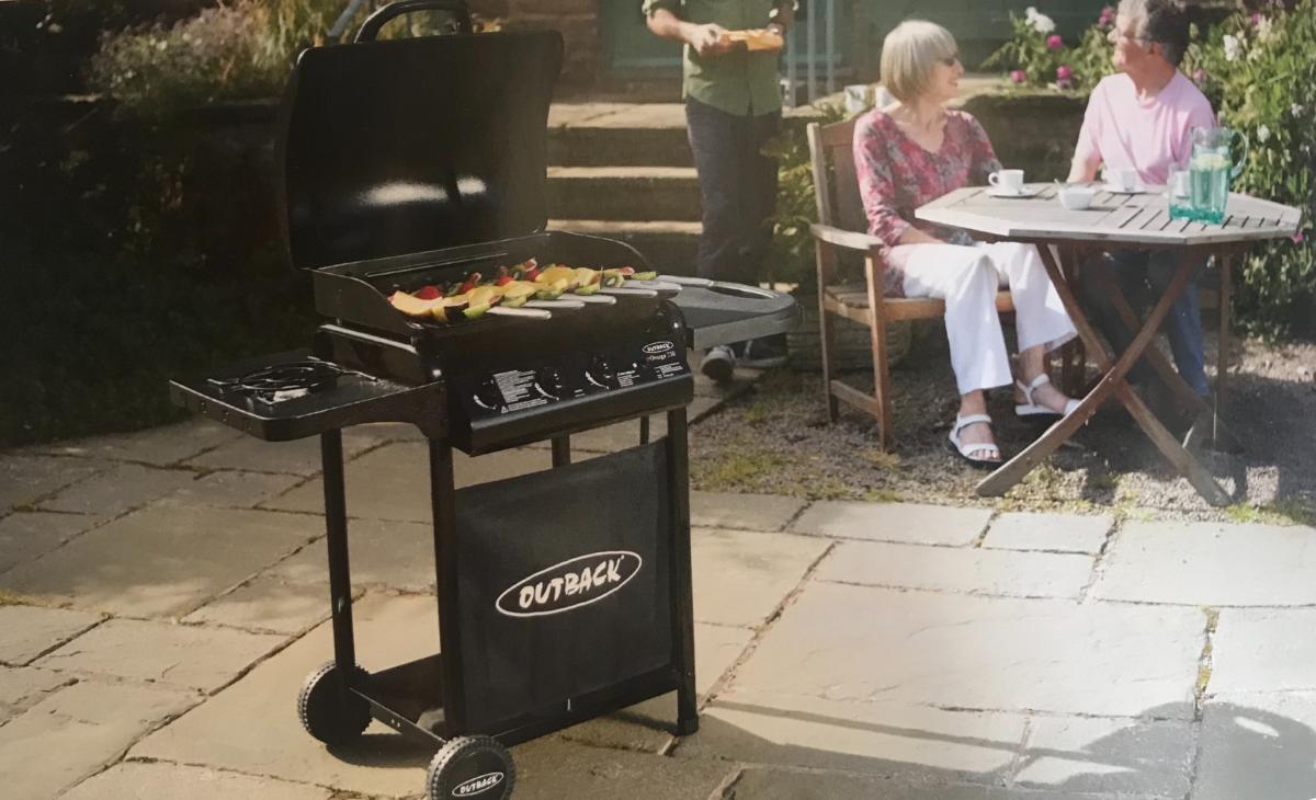2 bruleurs principaux et un brûleur latéral, Une tablette latérale pour faciliter les préparations et un support de chariot pour le rangement.