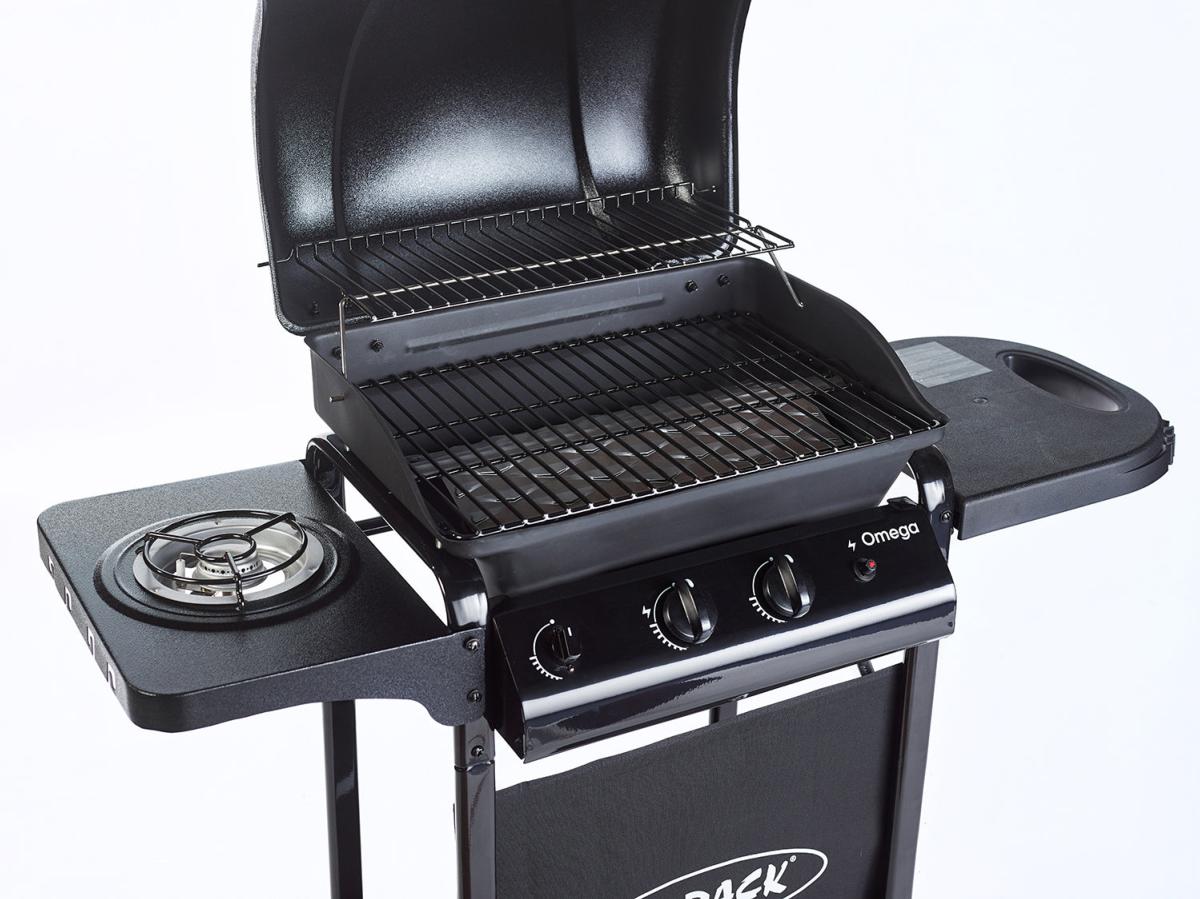 L’Outback Omega,est un barbecue au gaz, noir brillant. Une surface de cuisson de 500x360 avec une grille en acier emaillé;